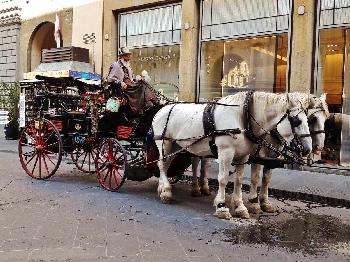 乘坐马车游览基安蒂,由专业马夫带领两匹雄壮的马匹驾驶。对于整个家庭或朋友团体来说,这是一种有趣的体验,但同时对于想在完全放松的情况下享受乡村生活的恋爱中的情侣来说,这也是非常浪漫的。